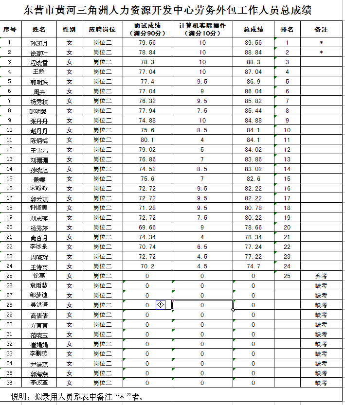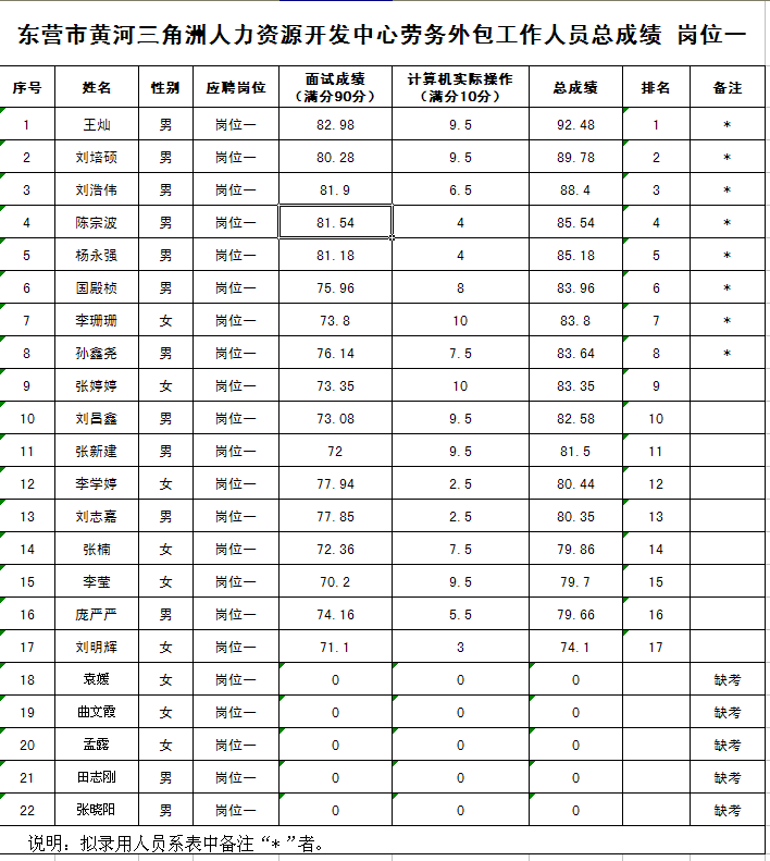 根據(jù)本次招聘活動的安排,現(xiàn)將考試人員的總成績及擬錄用人員名單予以公布。望擬錄用人員按照統(tǒng)一規(guī)定和要求辦理相關手續(xù)。