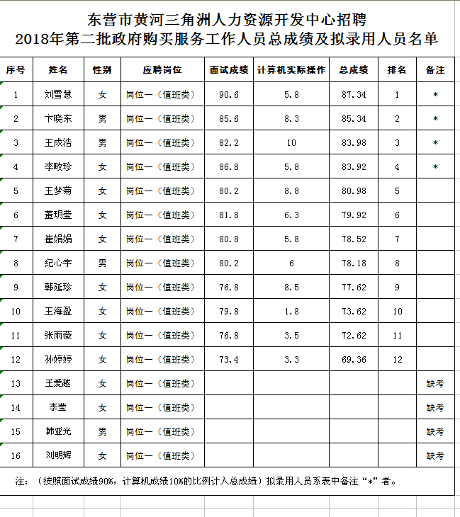 根據(jù)本次招聘活動的安排,現(xiàn)將東營市黃河三角洲人力資源開發(fā)中心招聘2018年第二批政府購買服務(wù)工作人員的總成績及擬錄用人員名單予以公布。望擬錄用人員按照統(tǒng)一規(guī)定和要求辦理相關(guān)手續(xù)。